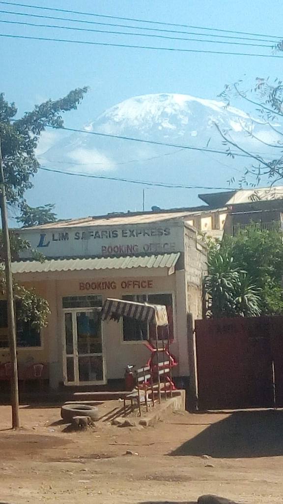 De Moshi ou des alentours, l’aspect du Kilimanjaro est variable. Plus l’on s’approche de sa base, moins il paraît élevé, alors qu’en prenant du recul, loin dans la steppe Maasai, ou en s’éloignant vers Arusha, il domine les plaines , monstre endormi, vieux sage bienveillant. Ne montre parfois que sa tonsure blanche, parfois que les plis du bas de sa robe, entre deux lèches de fumée. Qui ne l’aperçoit qu’une fois, dans un de ses mauvais jours, peut être déçu – le niveau de l’expectative – et qui le voit régulièrement sera toujours surpris des variations de son allure, ses couleurs et sa densité. Et le Mawenzi, tout en aiguilles et colère, qui tourné vers son grand frère, semble vouloir le suivre sans jamais le rattraper.
